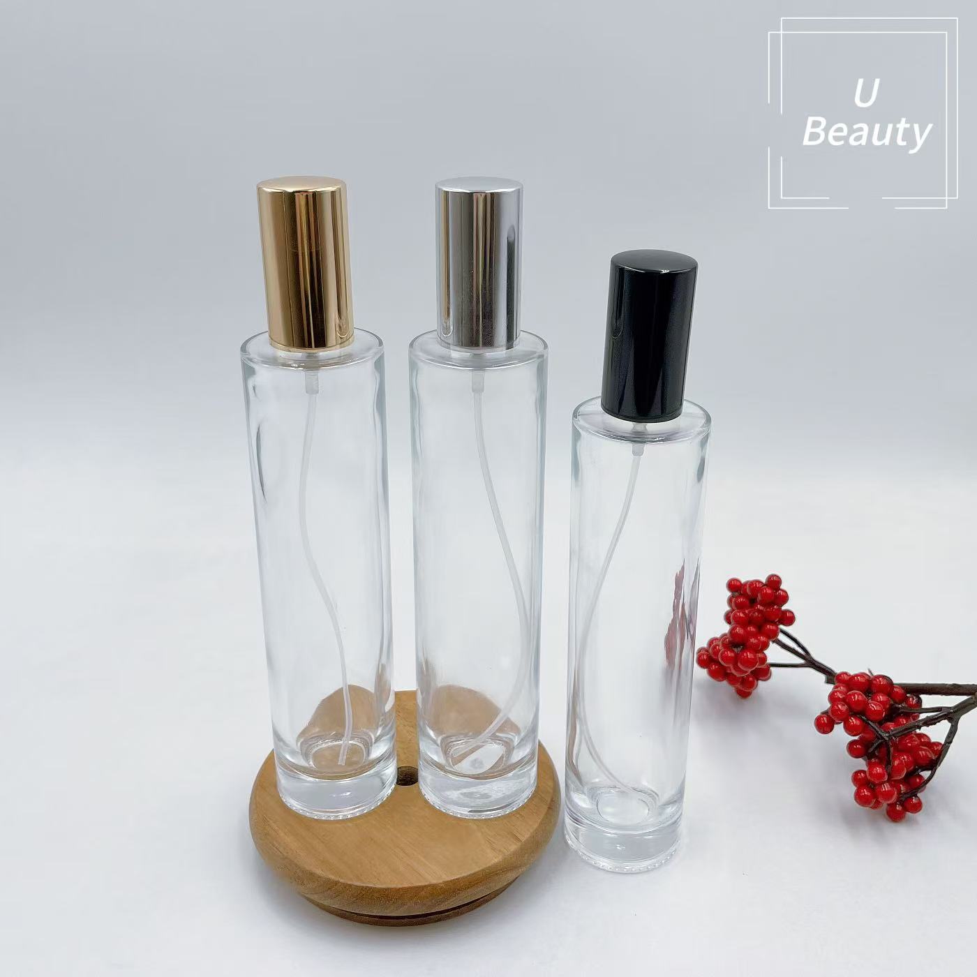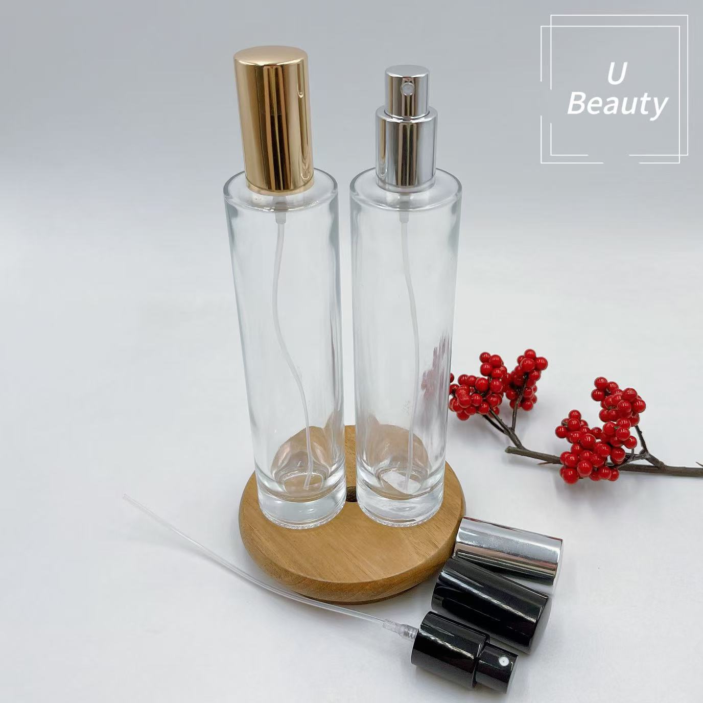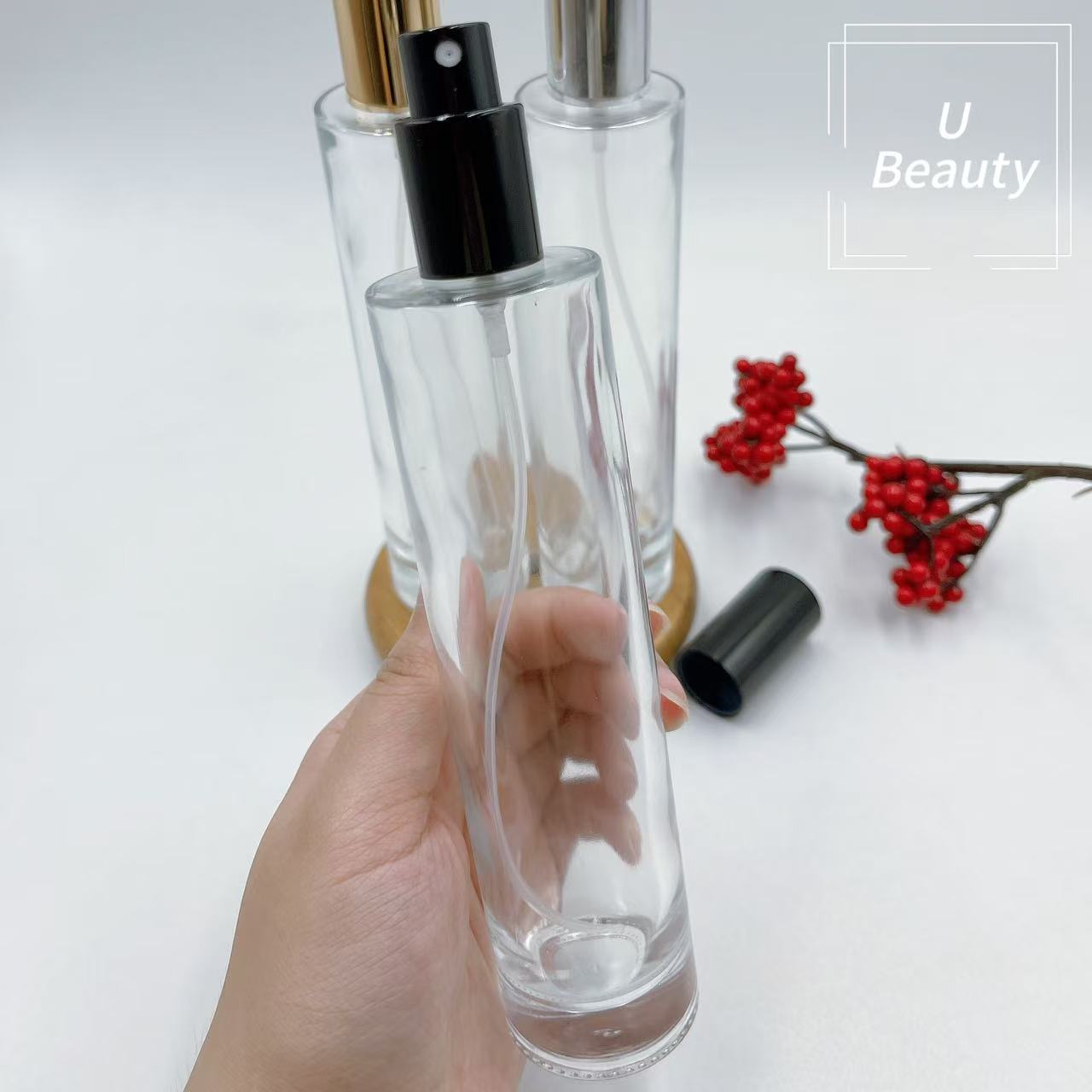 **透明瓶,金色喷雾;